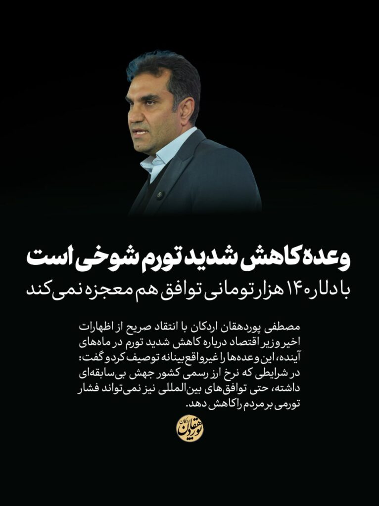 مصطفی پوردهقان اردکان با انتقاد صریح از اظهارات اخیر وزیر اقتصاد درباره کاهش شدید تورم در ماههای آینده، این وعدهها