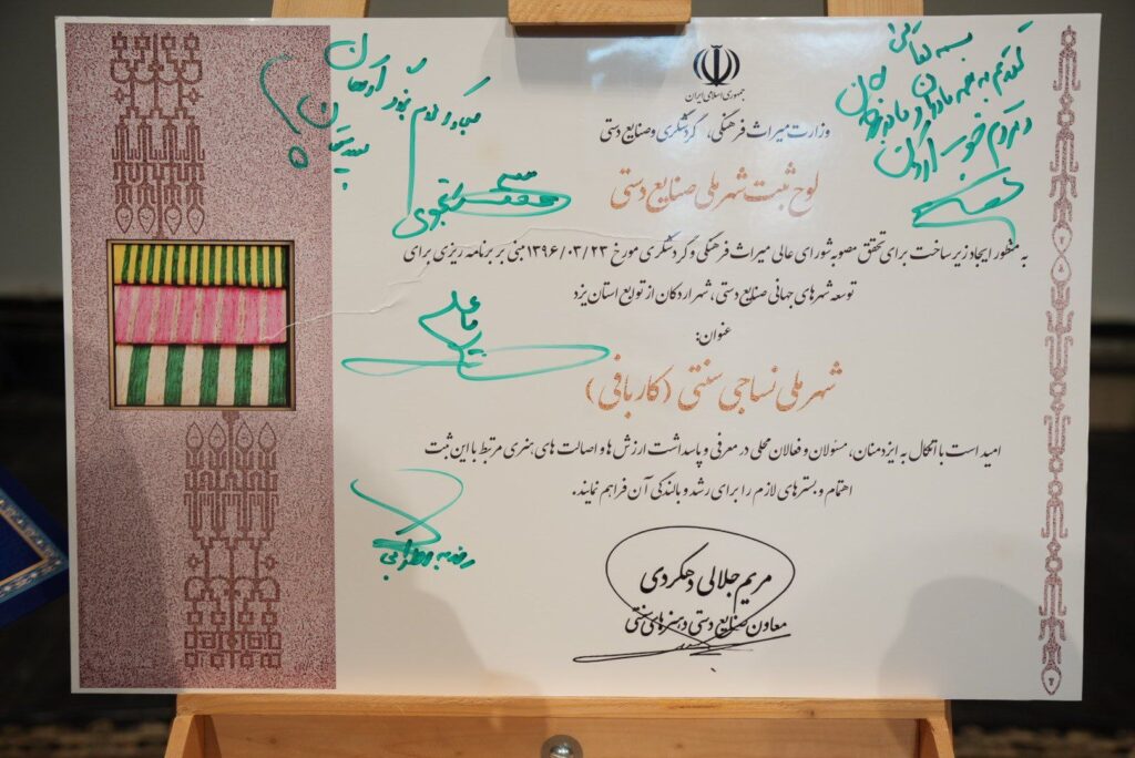▫️ گفتنی است در این مراسم، ضمن تقدیر از تعدادی از فعالان کاربافی، از لوح یادبود معرفی اردکان بهعنوان شهرملی کاربافی، رونمایی شد و جمعی از هنرمندان و فعالان این رشته؛ با اهدای هدیهای، از زحمات نماینده مردم اردکان در ثبت این رویداد، تقدیر کردند.